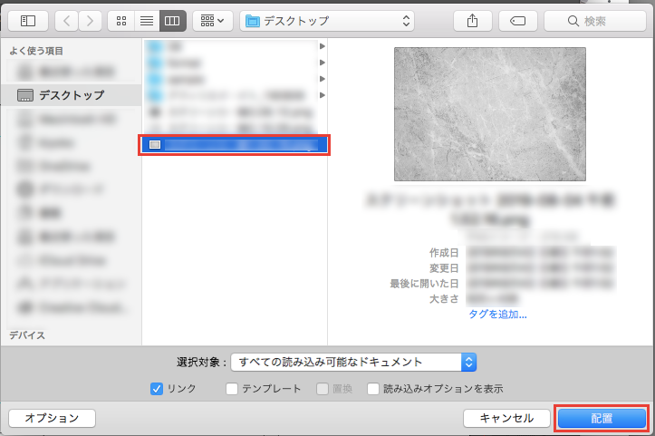 ダイアログボックスが表示されるので、大理石の画像を選択して[配置]ボタンをクリックします。