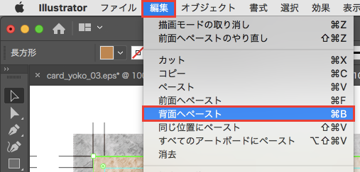 続いて、メニューの[編集]→[背面へペースト]を選択すると背面に複製されます。